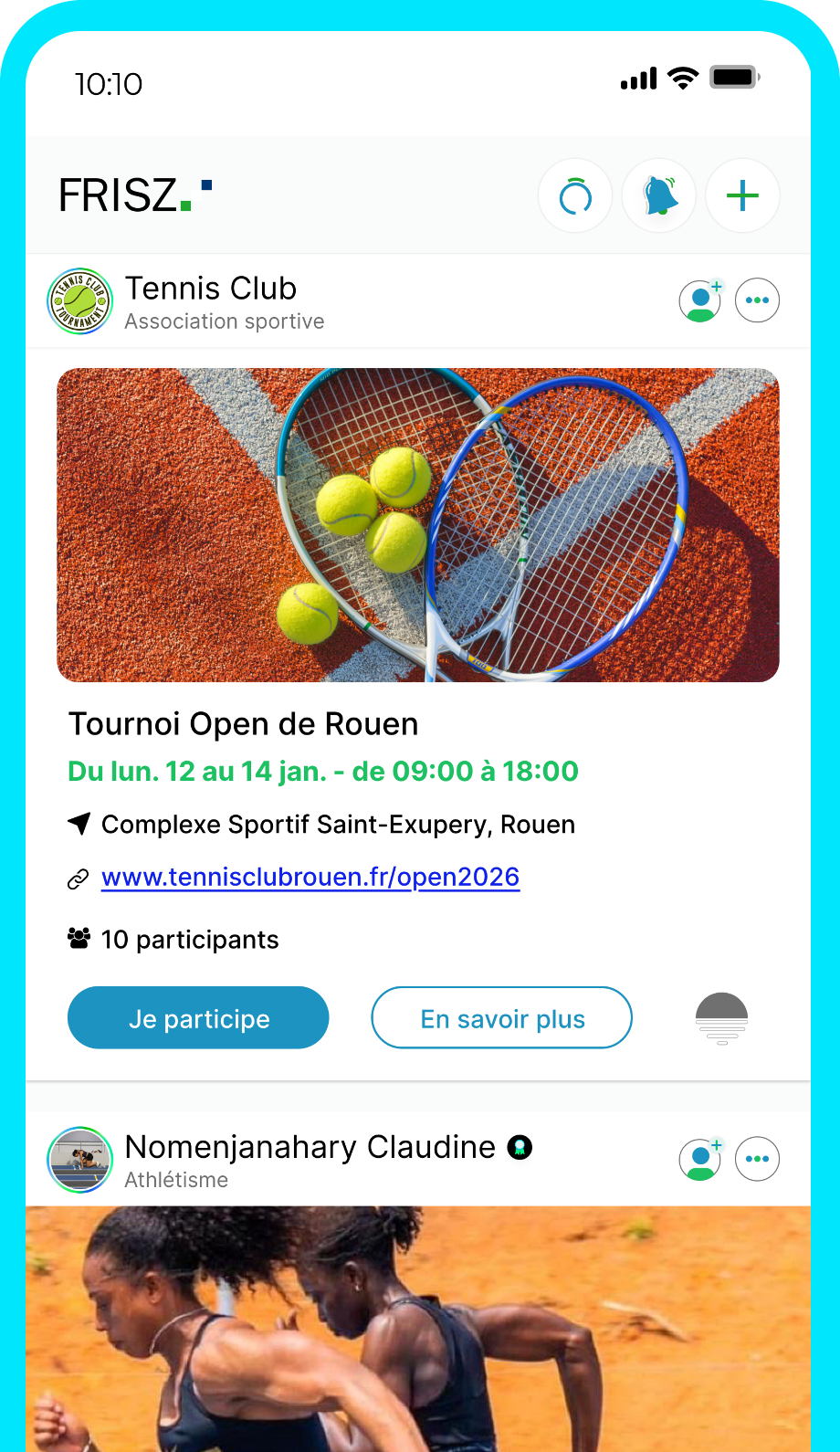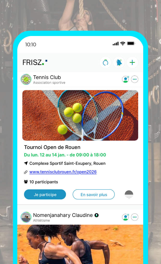 FRISZ n’est pas qu’un simple réseau social, c’est une plateforme qui vous accompagne dans chaque étape de votre parcours sportif. Que vous soyez athlète amateur, semi-professionnel, professionnel, club ou sponsor, nous sommes là pour vous aider à atteindre vos objectifs.