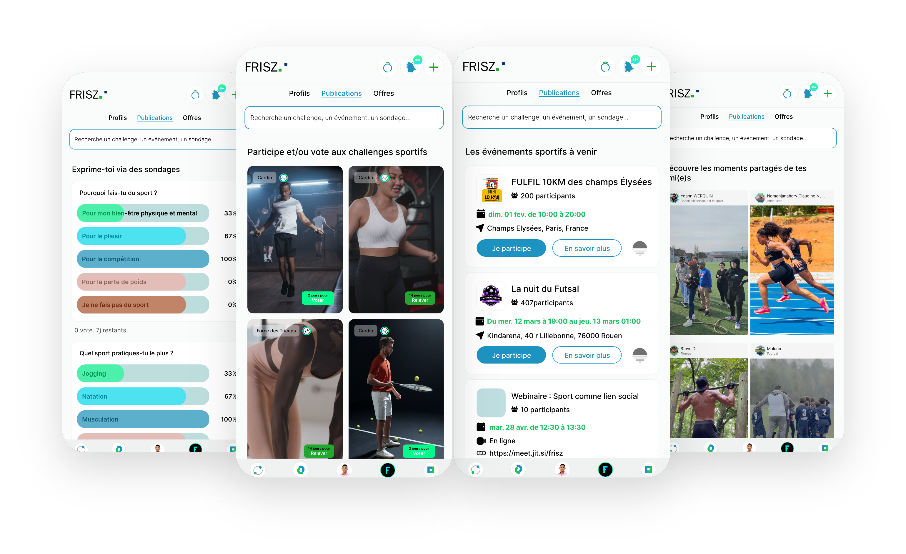 FRISZ n’est pas qu’un simple réseau social, c’est une plateforme qui vous accompagne dans chaque étape de votre parcours sportif. Que vous soyez athlète amateur, semi-professionnel, professionnel, club ou sponsor, nous sommes là pour vous aider à atteindre vos objectifs.