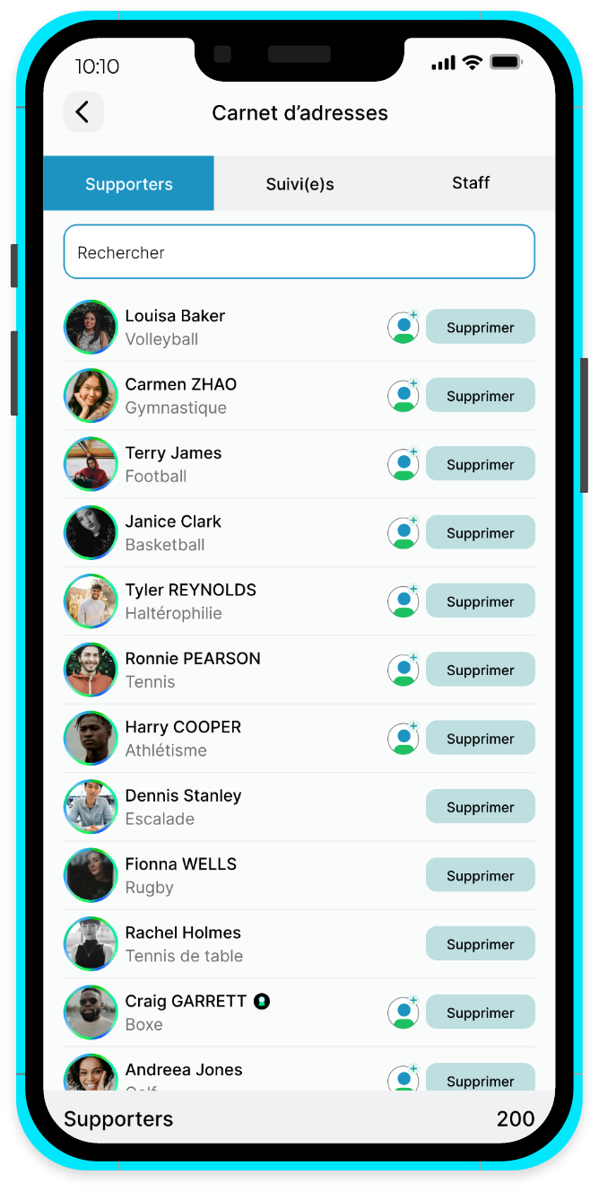Grâce à Pixel, la messagerie interne FRISZ ou vos applications extérieures, vous pouvez partager en un clic toutes les informations de votre profil avec des agents, clubs, sponsors ou toute personne intéressée de votre réseau.