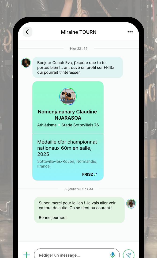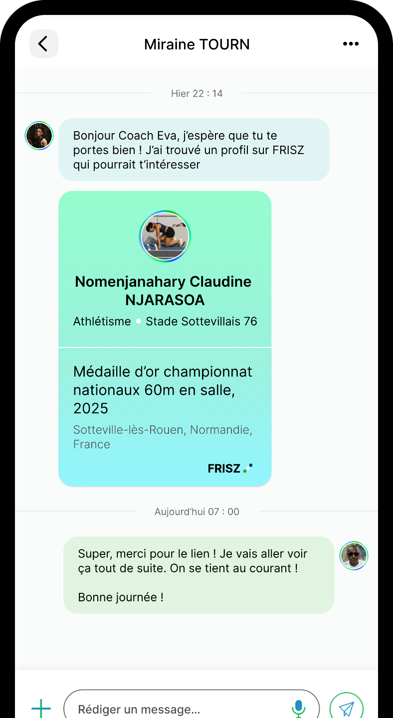 Je suis convaincu que FRISZ va transformer la manière dont les coaches et les joueurs interagissent. Une plateforme qui réunit tout l’écosystème sportif, où l’on peut communiquer, créer des opportunités et gagner en visibilité sans être noyé dans d’autres contextes, c’est une vraie avancée. On sent que l’app a été pensé pour nous, les acteurs du sport.