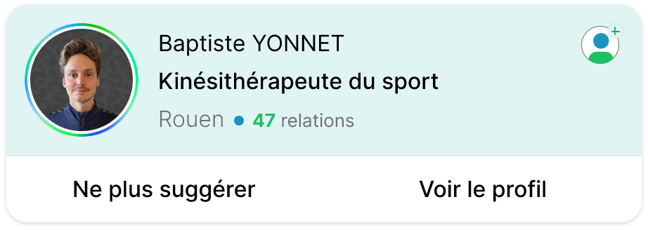 En fonction de votre sport, discipline, type de profil souscrit et localisation, FIND affiche aussi uneliste de recommandations de profils adaptées et pertinentes, pour vous aider à découvrir les talents ou contacts qui vous correspondent le mieux.
