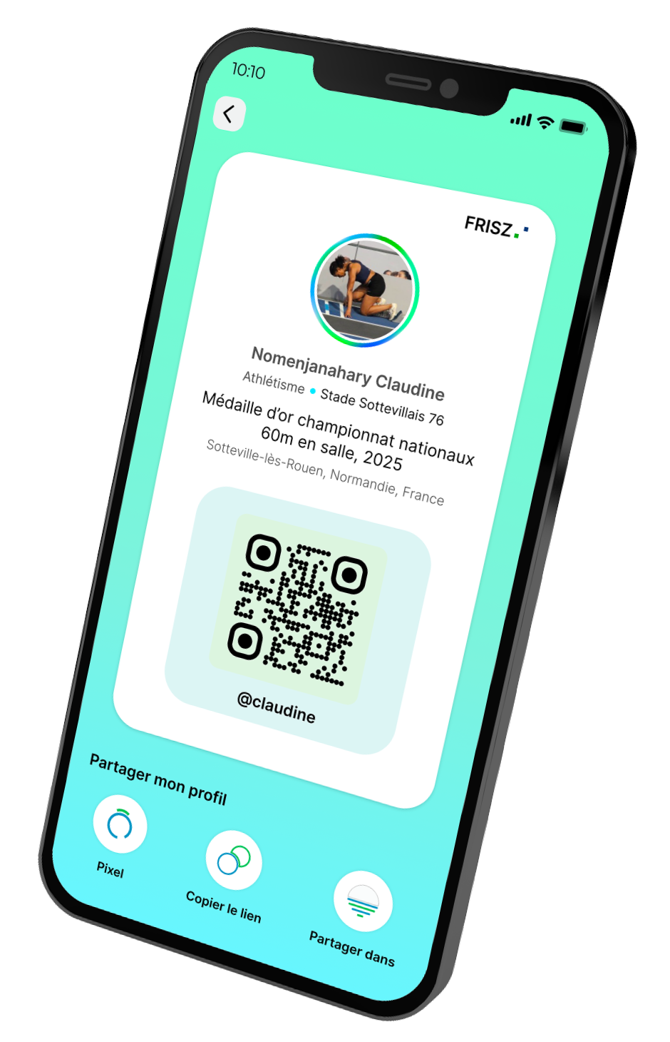 FRISZ, c’est une application que j’attends avec impatience. Pour une athlète comme moi, ce sera un vrai espace pour se faire connaître, partager son parcours et créer des connexions utiles surtout par rapport à la recherche de sponsors. Ce que j’aime, c’est que la plateforme met le sport et les sportifs au centre, sans barrière.
