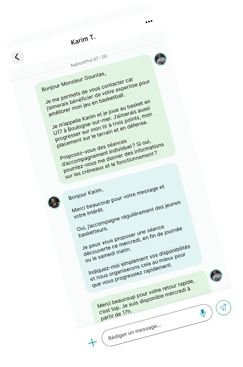 Discute avec des athlètes, clubs, des professionnels du métiers du sport comme des agents, des préparateurs physiques, des entraineurs et des sponsors. Contacte les facilement ainsi que tout membre de la communauté