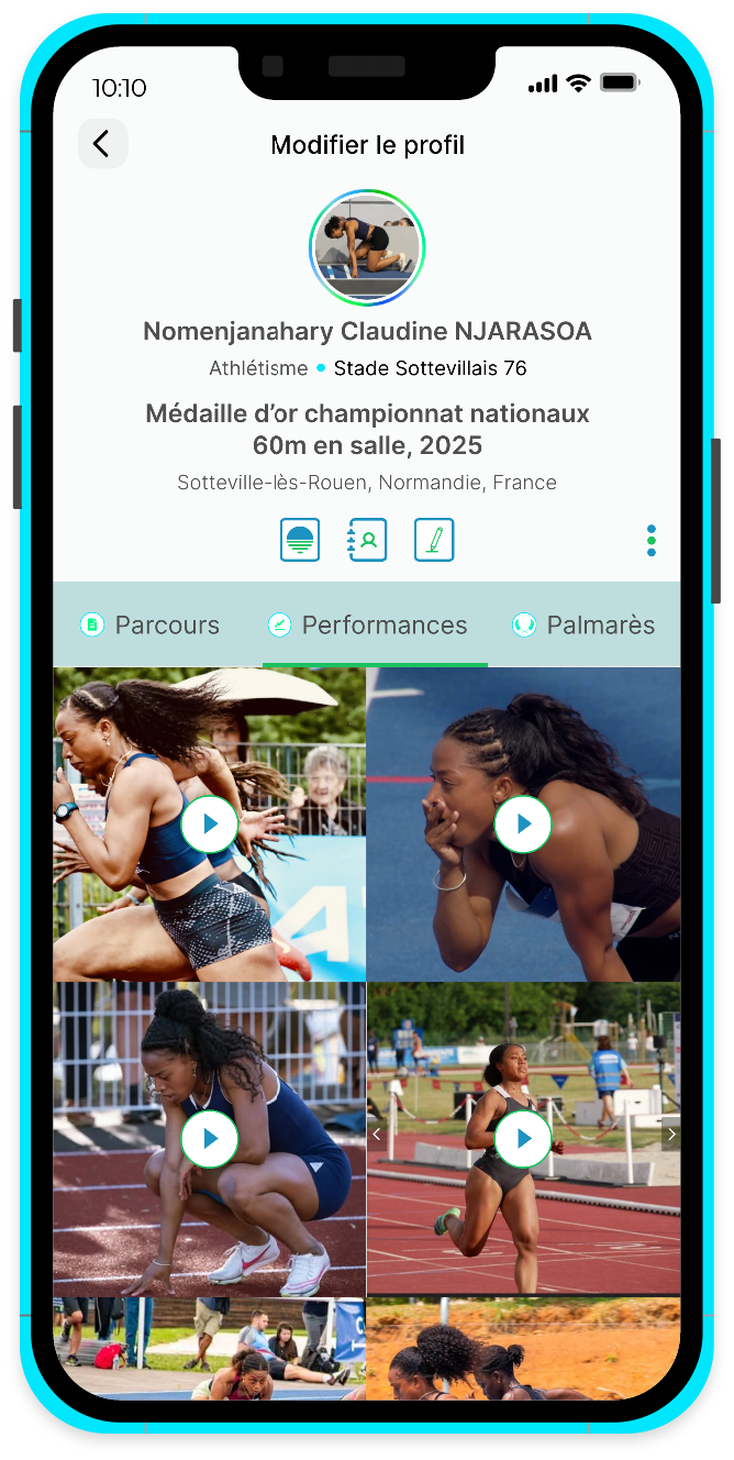Mettez en avant vos compétences, vos performances et vos réussites grâce à un profil structuré et professionnel. Partagez votre histoire avec le monde entier en un seul clic, et faites de votre profil une véritable carte de visite digitale